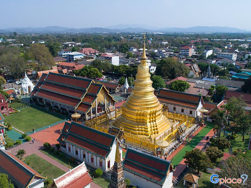 A magnificent 53.6-meter-tall square stupa enshrining the Buddha’s chest bone relic with a golden spire weighing 110 kilograms atop the pagoda.