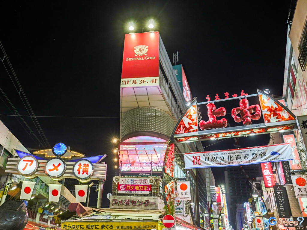 Ameya Yokocho Market — commonly called Ameyoko — is a bustling open-air market street located between Ueno Station and Okachimachi Station, running parallel to the Yamanote Line tracks. It stretches for about 350 meters, roughly a 5-minute walk from Ueno Station, covering a total area of 15,257 square meters. The market begins behind the Yodobashi Camera building and continues south along the railway until the Komuro Building.