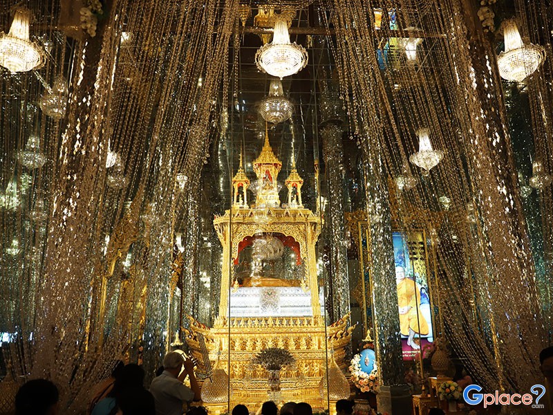 The most iconic landmark of Chantararam Temple is the 100-Meter Glass Viharn, which is uniquely beautiful and visually striking. The interior of the viharn is adorned with glass pillars and shimmering glass mosaics throughout the entire structure. When illuminated by artificial or natural light, the surfaces reflect sparkling light in a breathtaking display. Inside the viharn are enshrined a replica of Phra Phutthachinnarat, as well as a ceremonial pavilion housing the preserved remains of Luang Pho Ruesi Ling Dam. Devotees often come here to meditate, chant prayers, and pay their respects in a calm and reverent atmosphere.