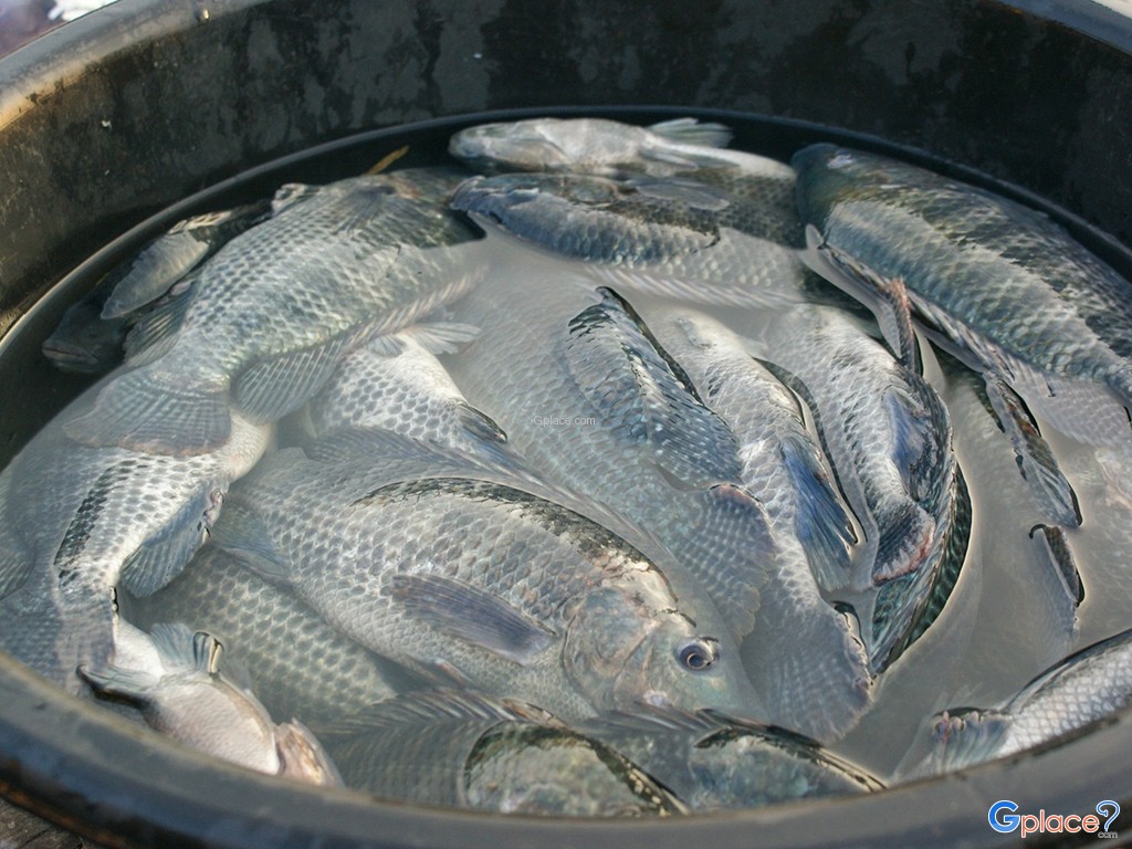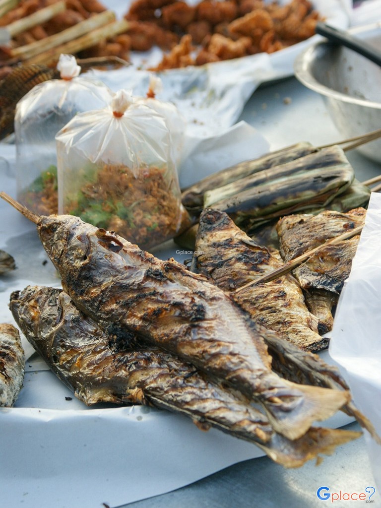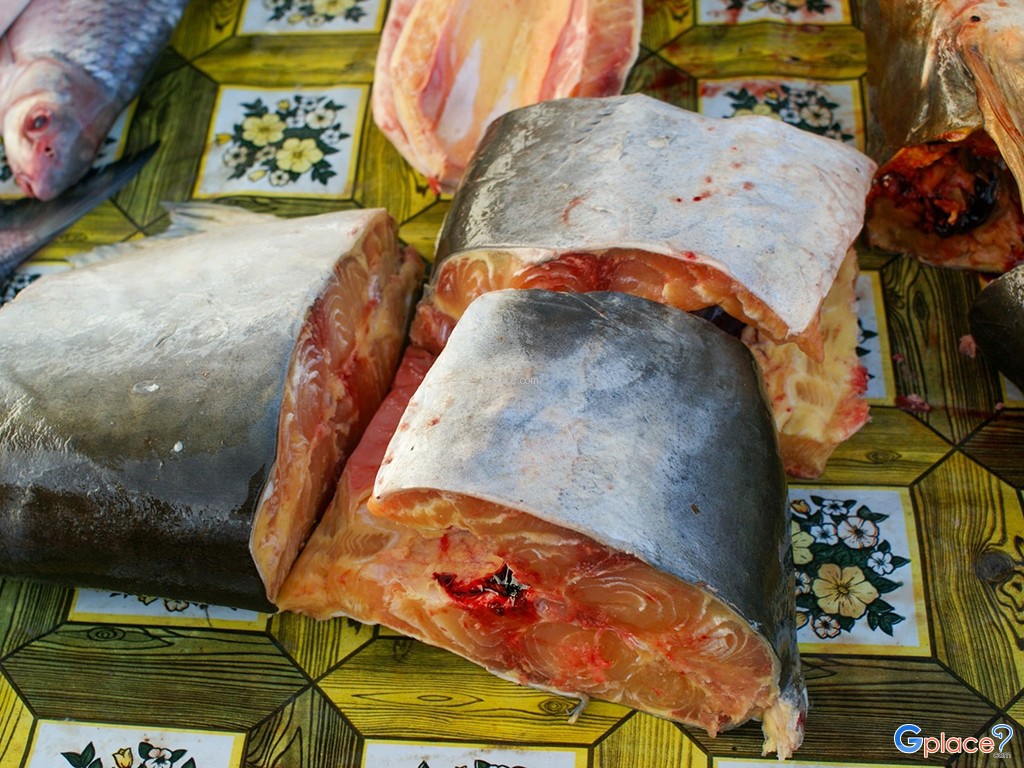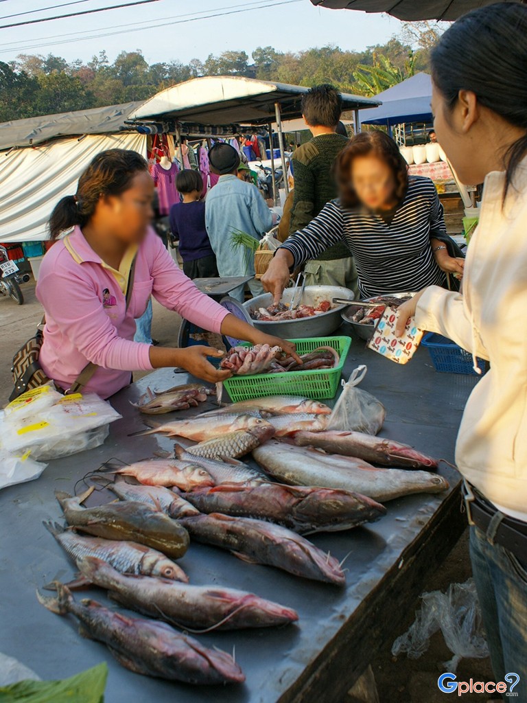 Morning Market at Khong Jiam, offers a variety of local fresh food such snake-head fish, Here is the conjunction of two rivers e.g. the Moon and Khong rivers, not far from the Khong Jiam downtown.