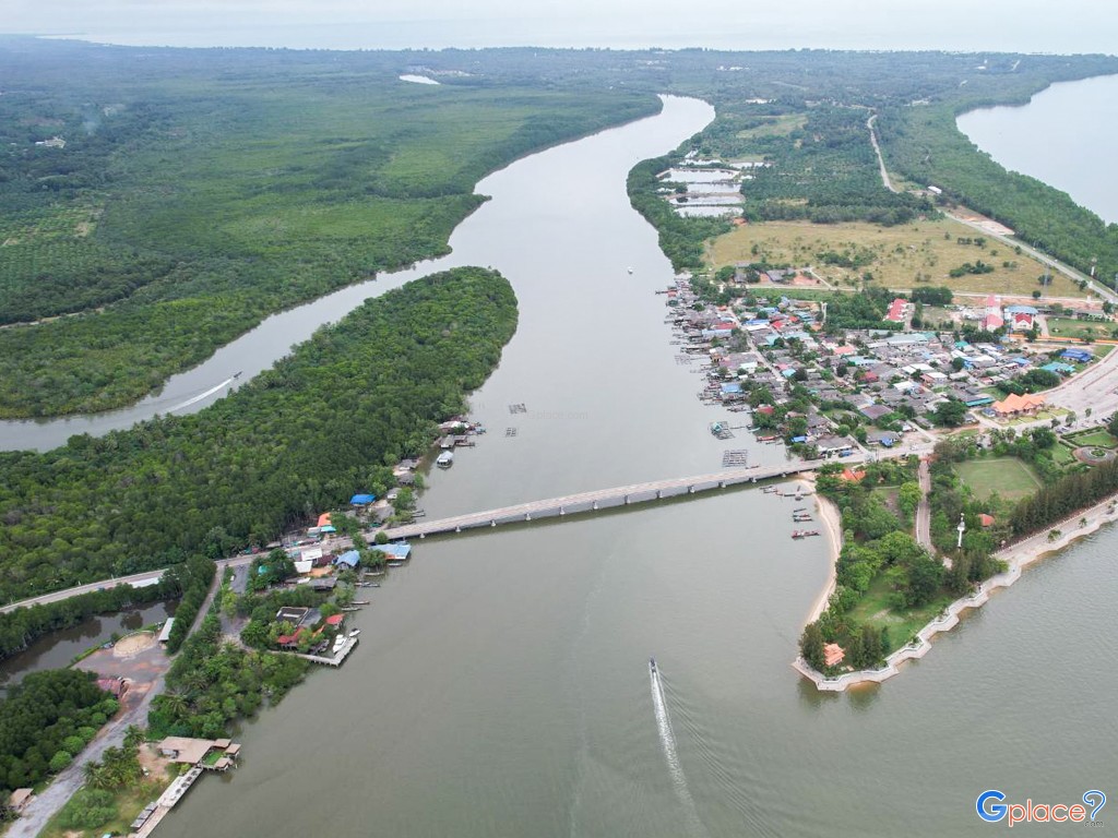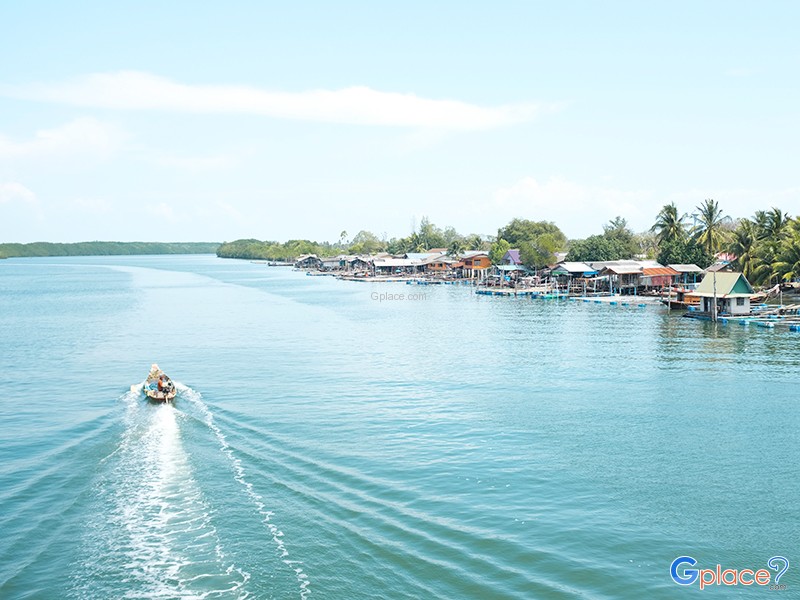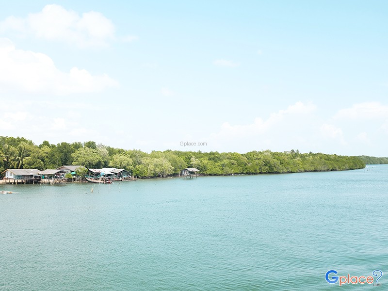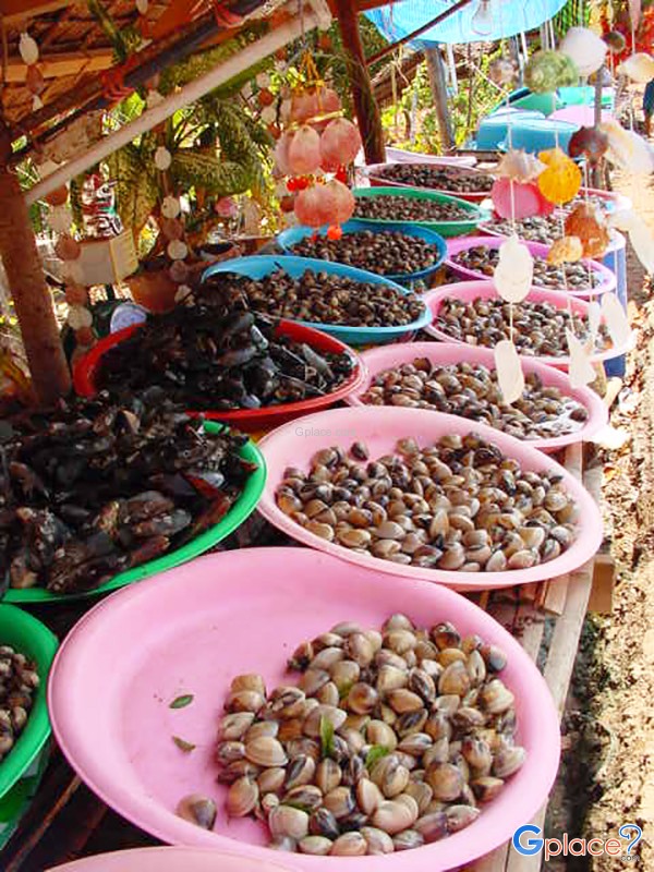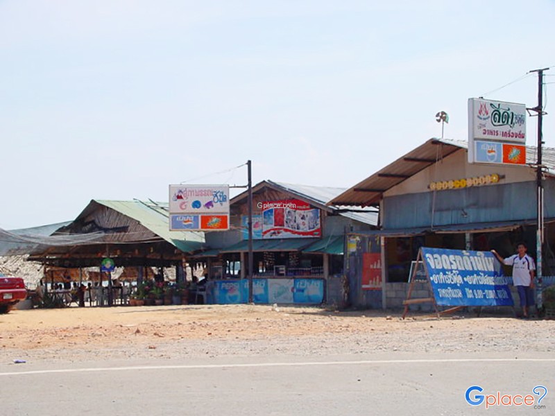 “Plai Laem Village, Chaiya District, sells Thai silk, Laem Pho, cheap seafood stalls along the road along the seashore”