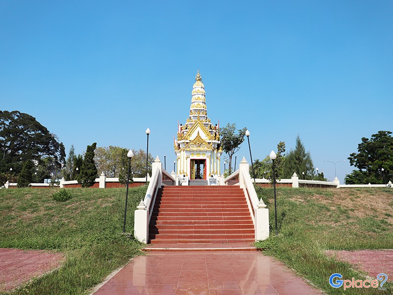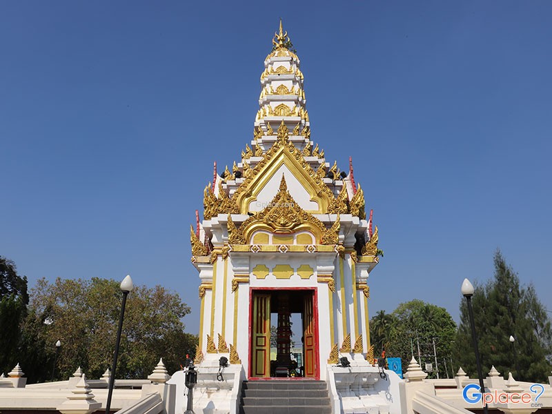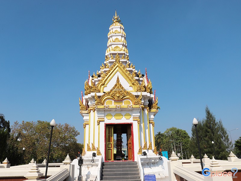 Phitsanulok City Pillar Shrine. Enshrined within the City Pillar Shrine Located along the Nan River in the west near the town hall, Phitsanulok. Design by the Fine Arts Department it is a crown prang.