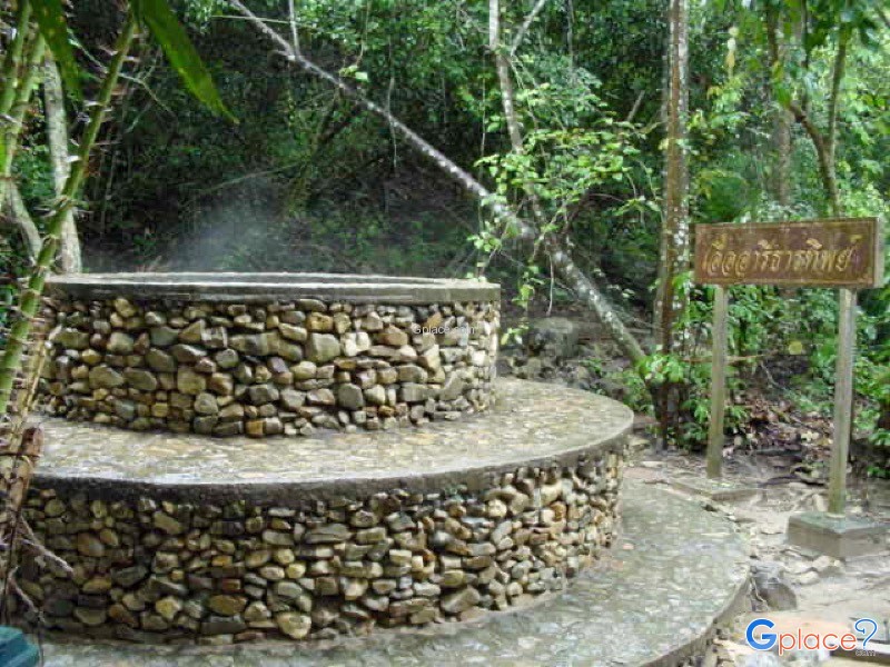 The hot spring is also located near Khao Phlu Cave, which features beautiful stalactites and stalagmites, and Wat Tham Khao Kriab, a meditation site with about 370 steps leading up to a Buddha image inside the cave.