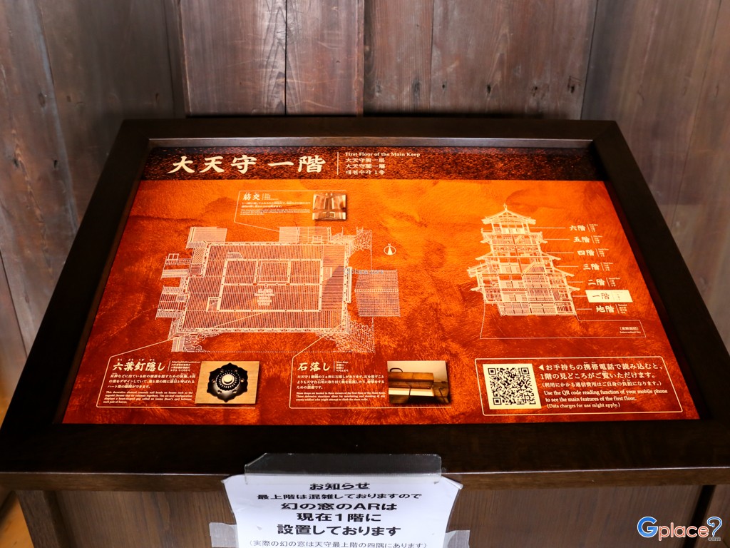 Inside, the castle reveals its historical integrity: steep wooden staircases, open chambers with minimal furnishings, and original elements such as hidden rooms, stone-drop windows, and shooting holes. Informational displays on each floor help visitors understand the castle's construction and its preservation over time. Reaching the top floor, guests are rewarded with panoramic views over Himeji City and can admire the intricate roof ornaments shaped like fish—believed to protect the structure from fire.