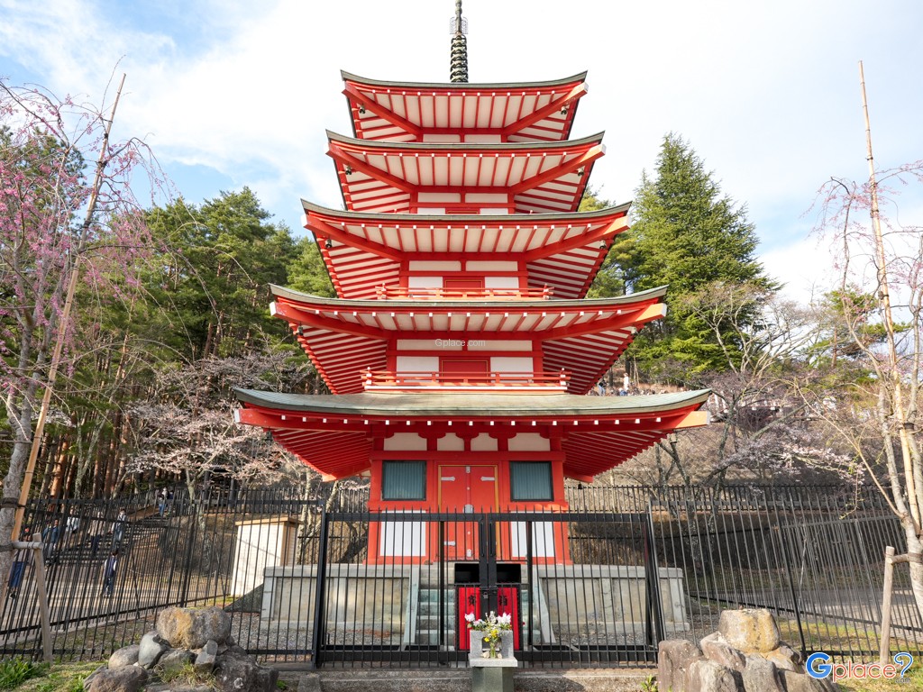 Arakurayama Sengen Park is located on the slopes of Mount Arakura in Fujinomiya City, Shizuoka Prefecture, covering about 4.3 hectares. Its centerpiece is the vibrant red five-story Chureito Pagoda, built as a peace memorial honoring those who died in wars.