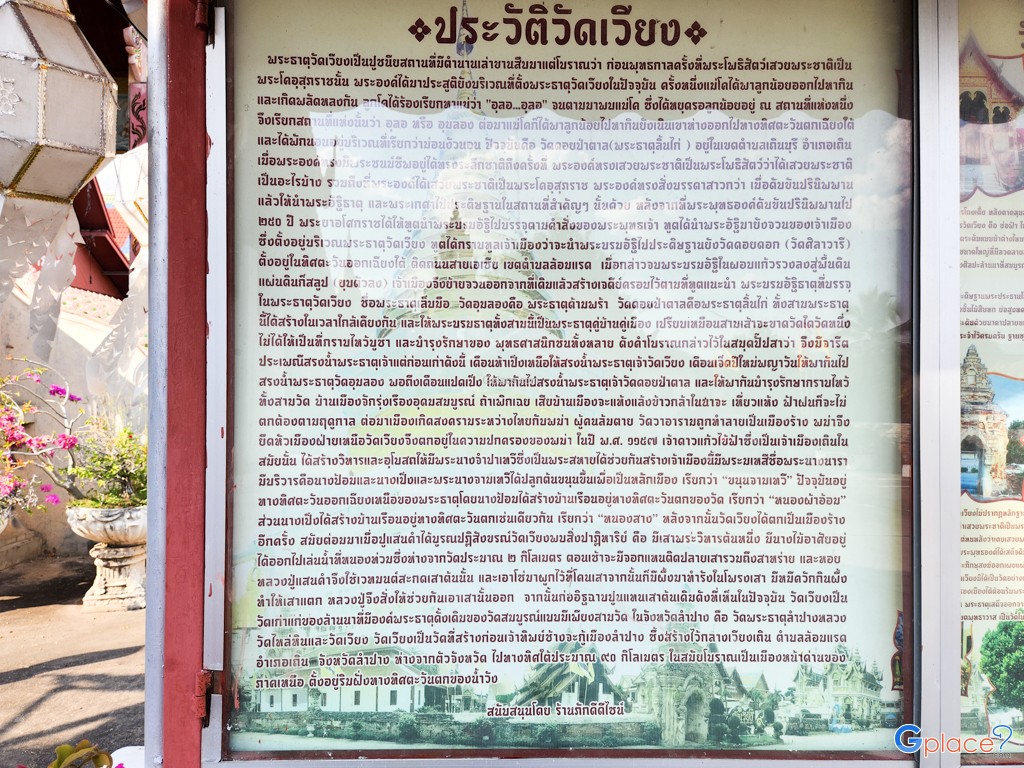 Wat Wiang is a traditional temple in the city. The art form resembles Wat Phra That Lampang Luang. But smaller. The Chedi is the center of the temple. The temple is located east of the relics or the front of the temple. Surrounded by pavilions, which are the boundary balcony. The front entrance is made of beautiful stucco arches adorned with stucco. It is a form of an ancient temple found in Lampang province within the temple architecture of the temple. And gold painting should watch. According to the Annals of the city. Said that the monk Sangthitthi built this temple in the late 22nd century or about 1692.